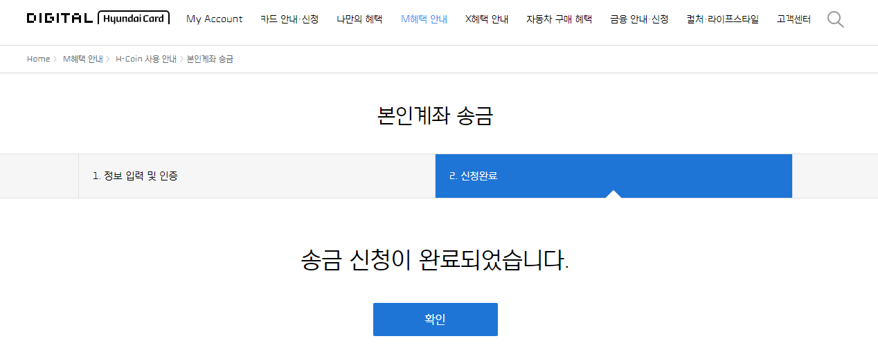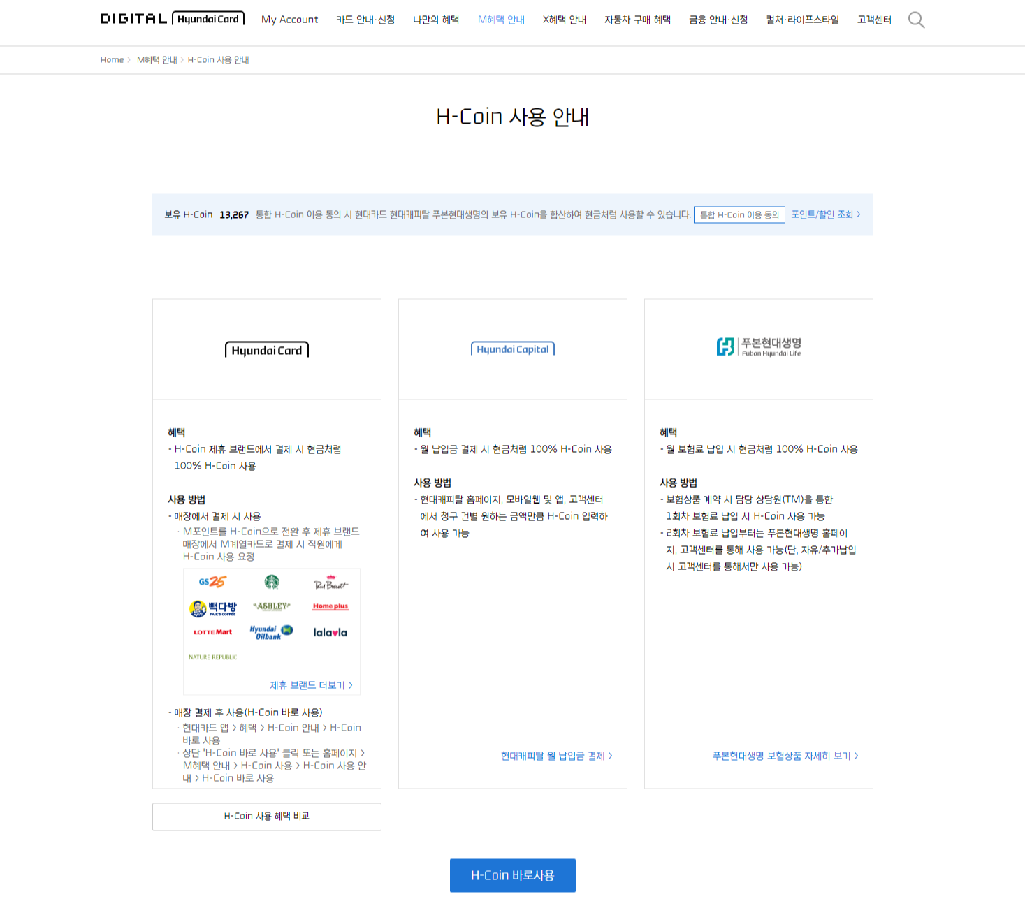 'M혜택 안내'메뉴의 'H-Coin 사용 안내'를 클릭