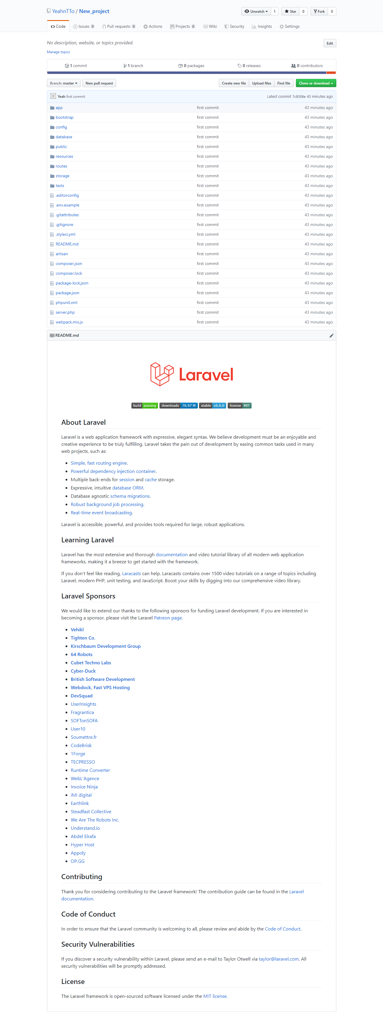 로컬에 만들어 놓은 라라벨 프로젝트를 github에 올리기