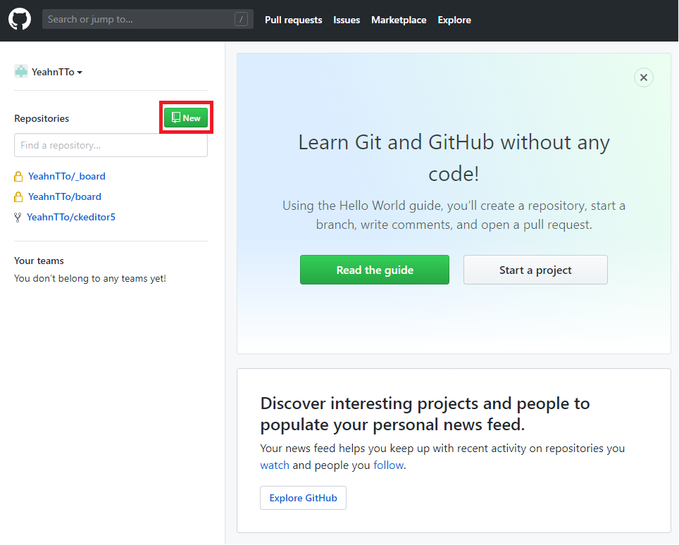 // 내려받을 디렉토리 위치로 이동 후 git clone https://github.com/YeahnTTo/New_project.git* git pull 하여 저장소의 소스로 갱신