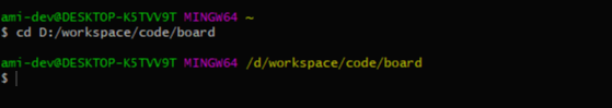 git bash를 열어 프로젝트가 있는 위치로 이동한다.