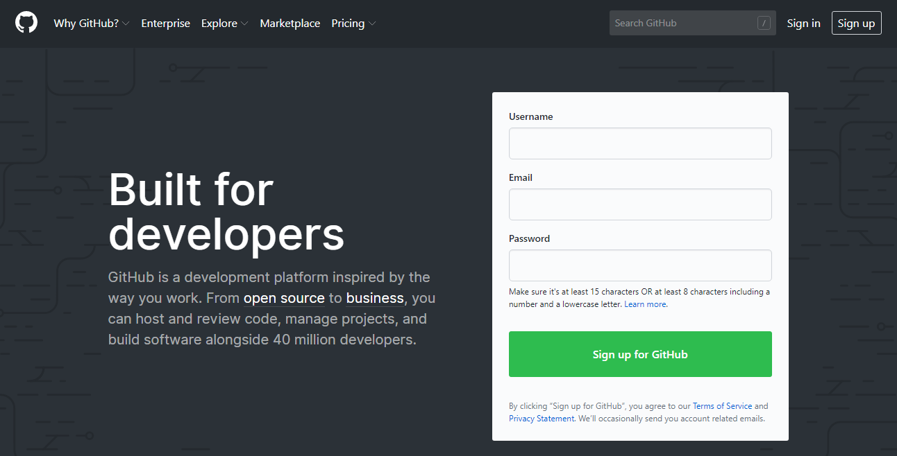 github sin up -