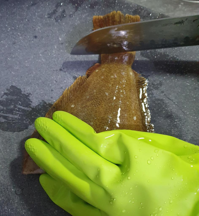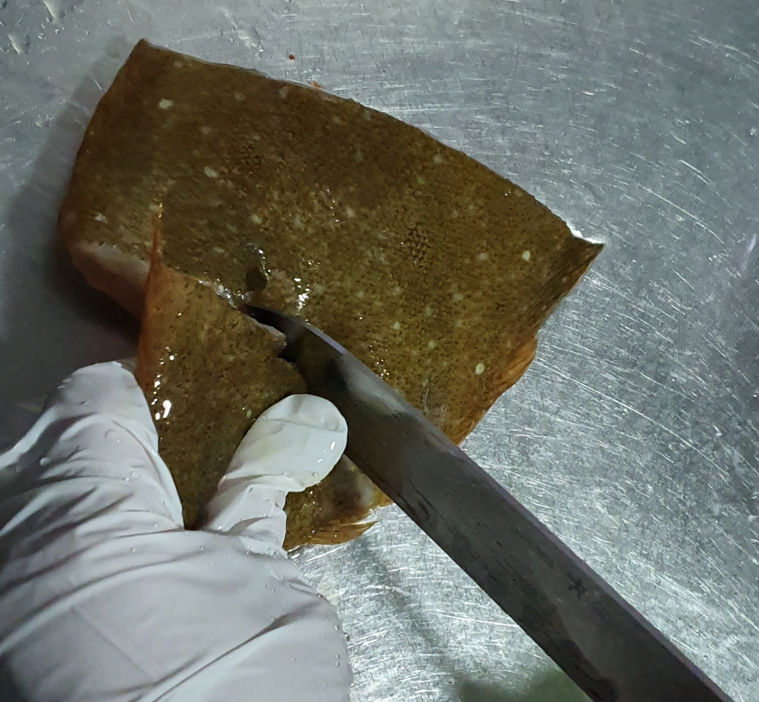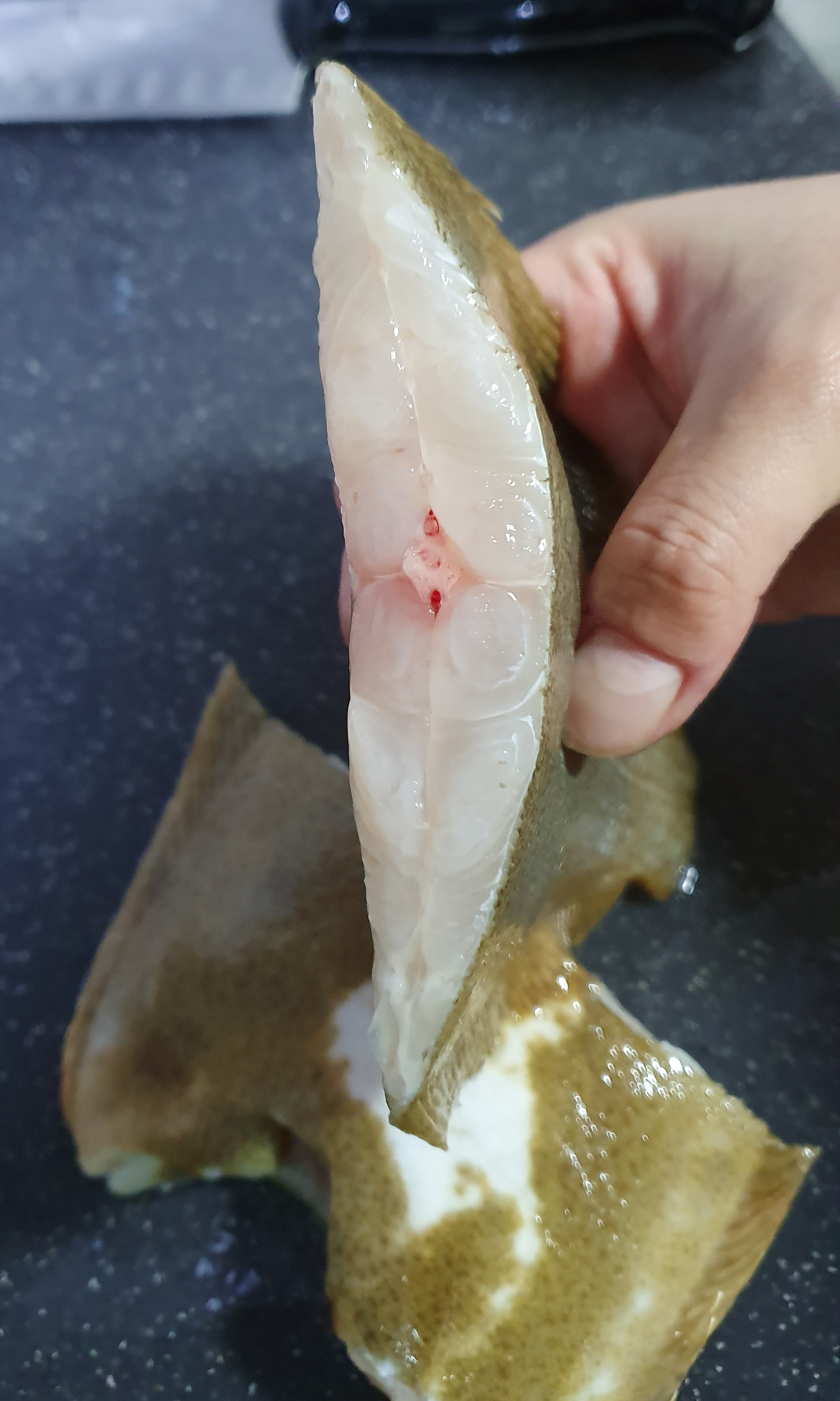 손질한 광어의 단면을 보자면 작은 크기에 비해 살수율은 높은거 같다.