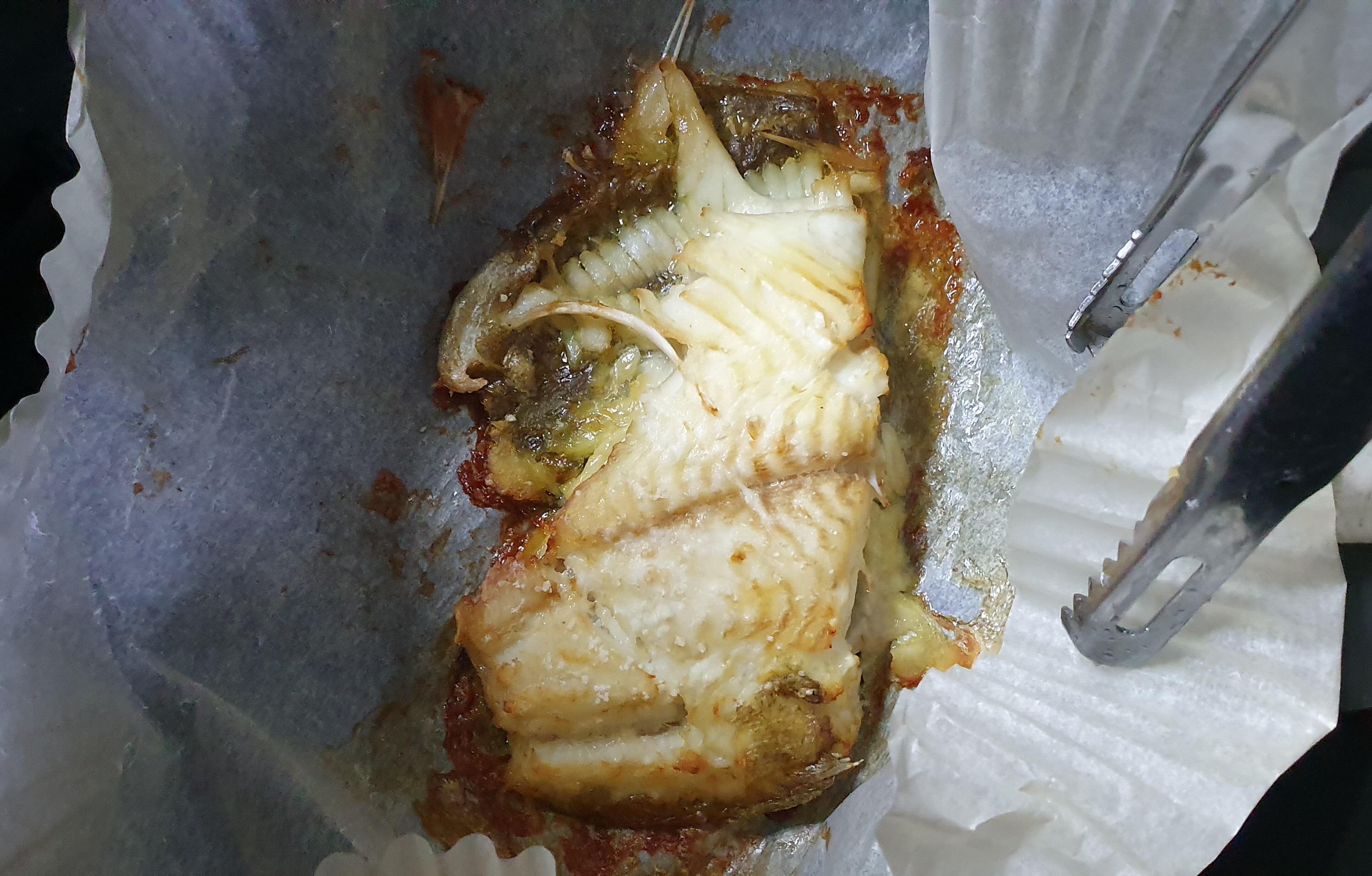 종이 호일 깔고 광어 반쪽만 넣어본다.