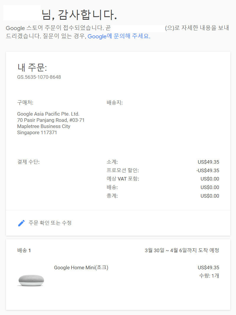 메일에 있는 구매버튼을 눌러 진행하면 된다.