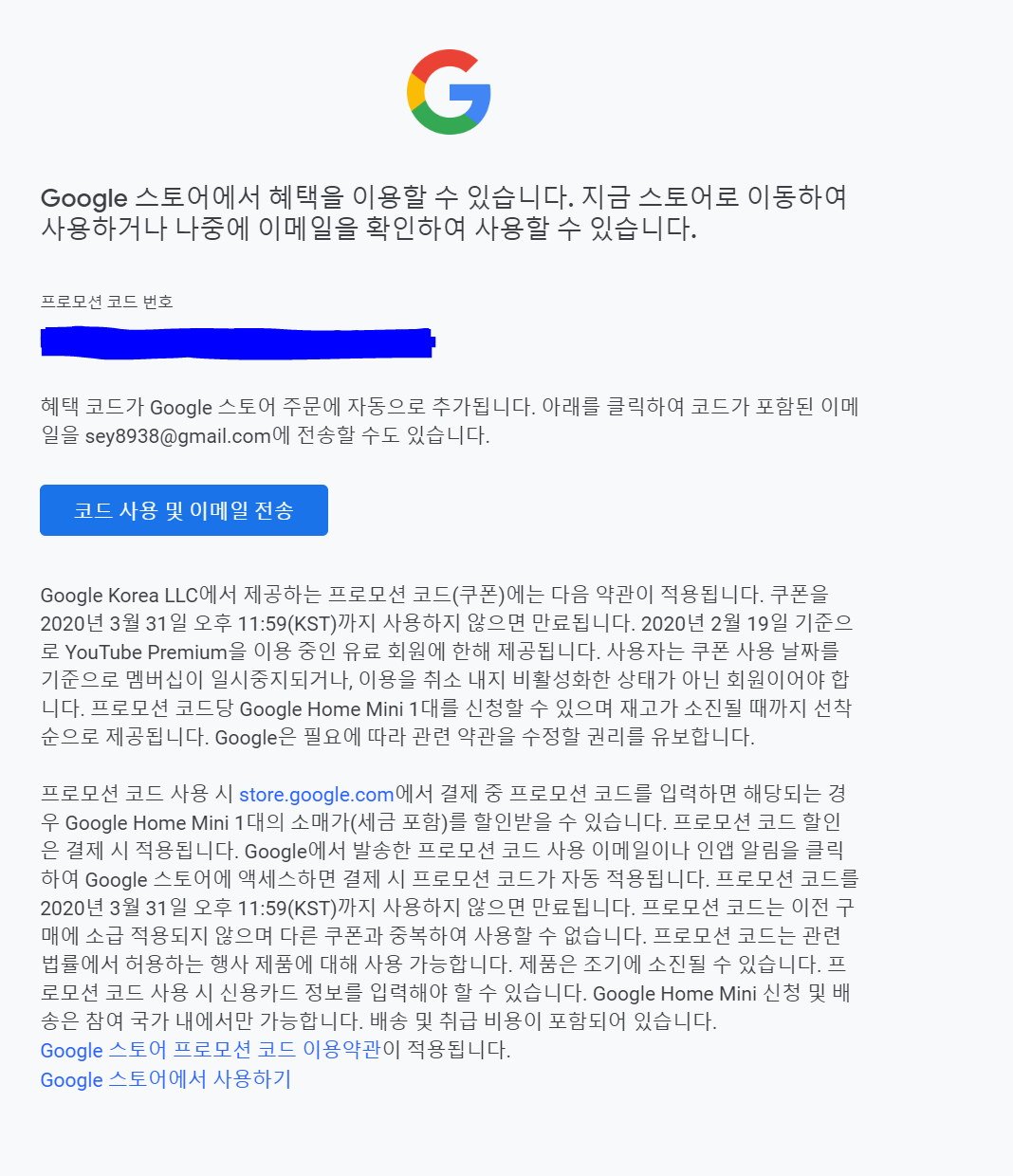 지메일로 가면 해당 프로모션 코드가 추가되어있는 메일이 와있을 테니