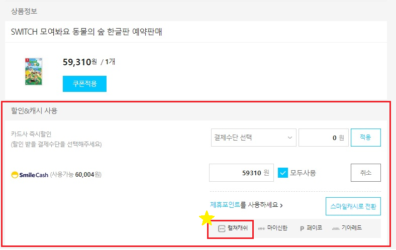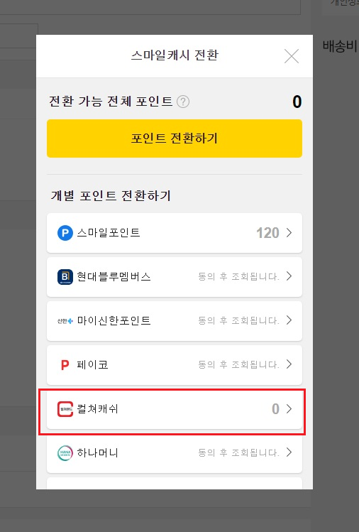전에 사두었던 문상을 스마일캐시로 전환한다.