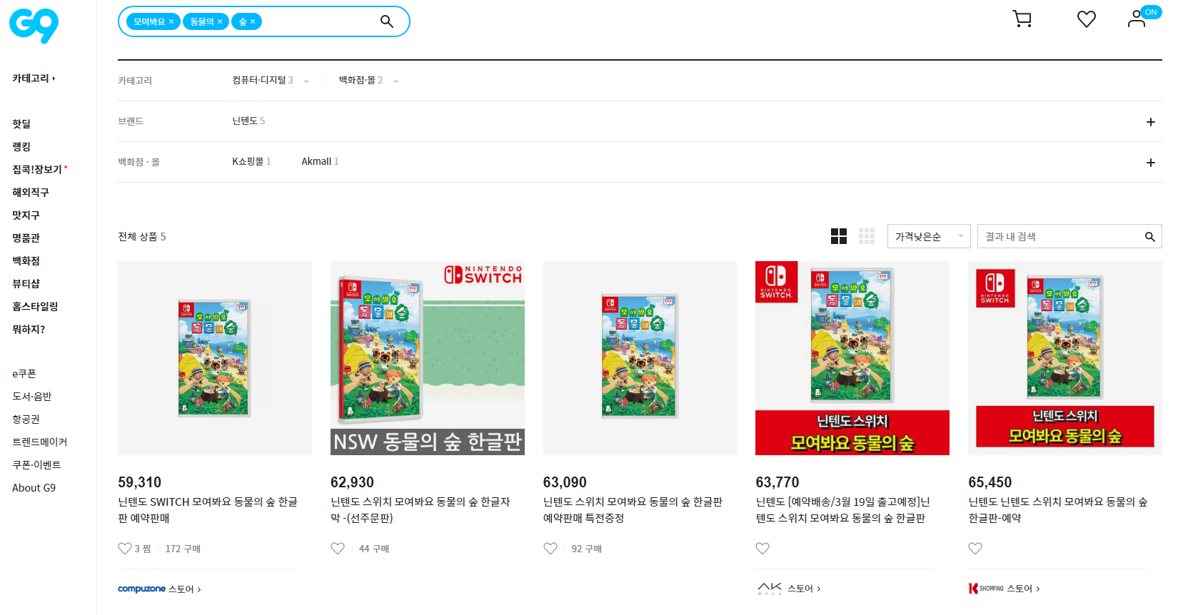 G9에서 최저가 찾는다.