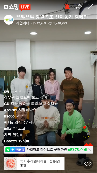 2020.11.09 12시 정각에 속초 홍게살 라이브를 시작한다고 알림이 떴다.