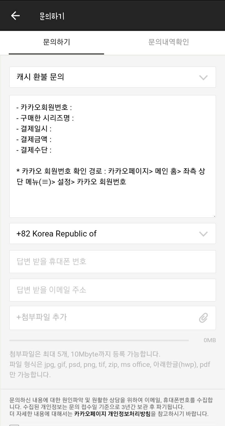 일단 환불방법 모르겠으니 카카오 페이지 고객센터에서 환불문의를 넣었다.