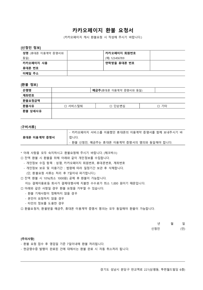 카카오페이지는 그냥 내가 가진 모든 캐시를 환불해야한다는 방침인듯.