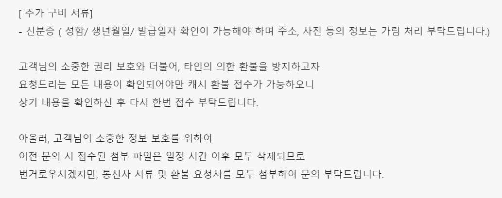 저번에 제출했던 이동 통신사 이용계약 등록사항 증명서, 신분증, 환불신청서를 다시 첨부해야한다.