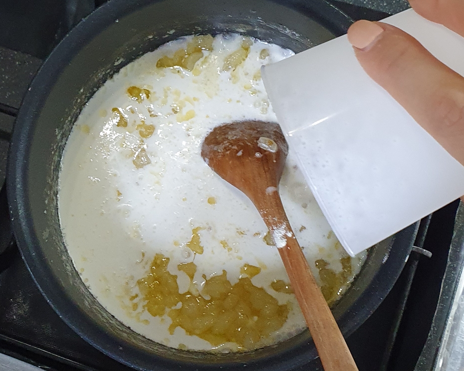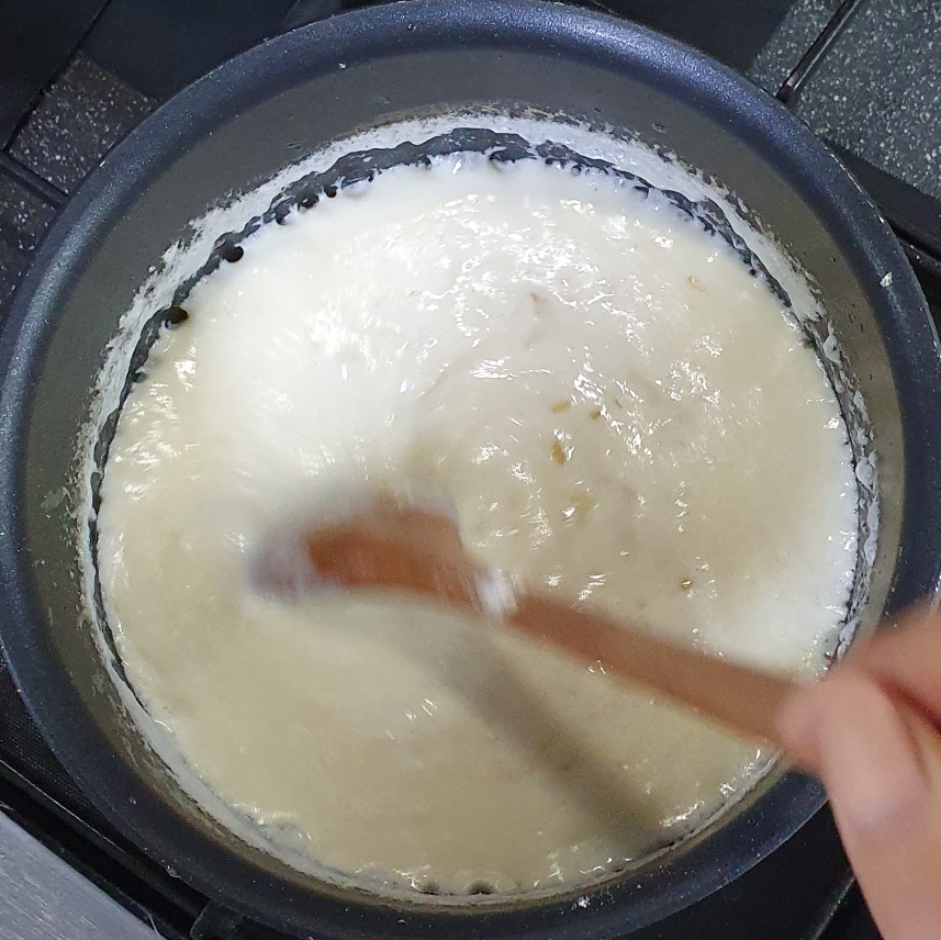생크림을 넣고 잘 저어주다가
