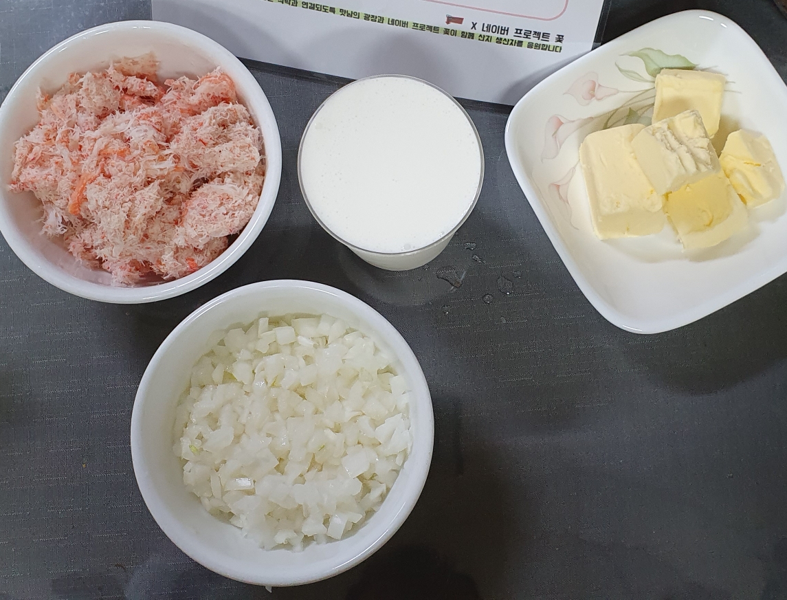 저번에 받은 레시피 중 '홍게 살 크림 베이스'레시피를 응용해볼 생각이다.