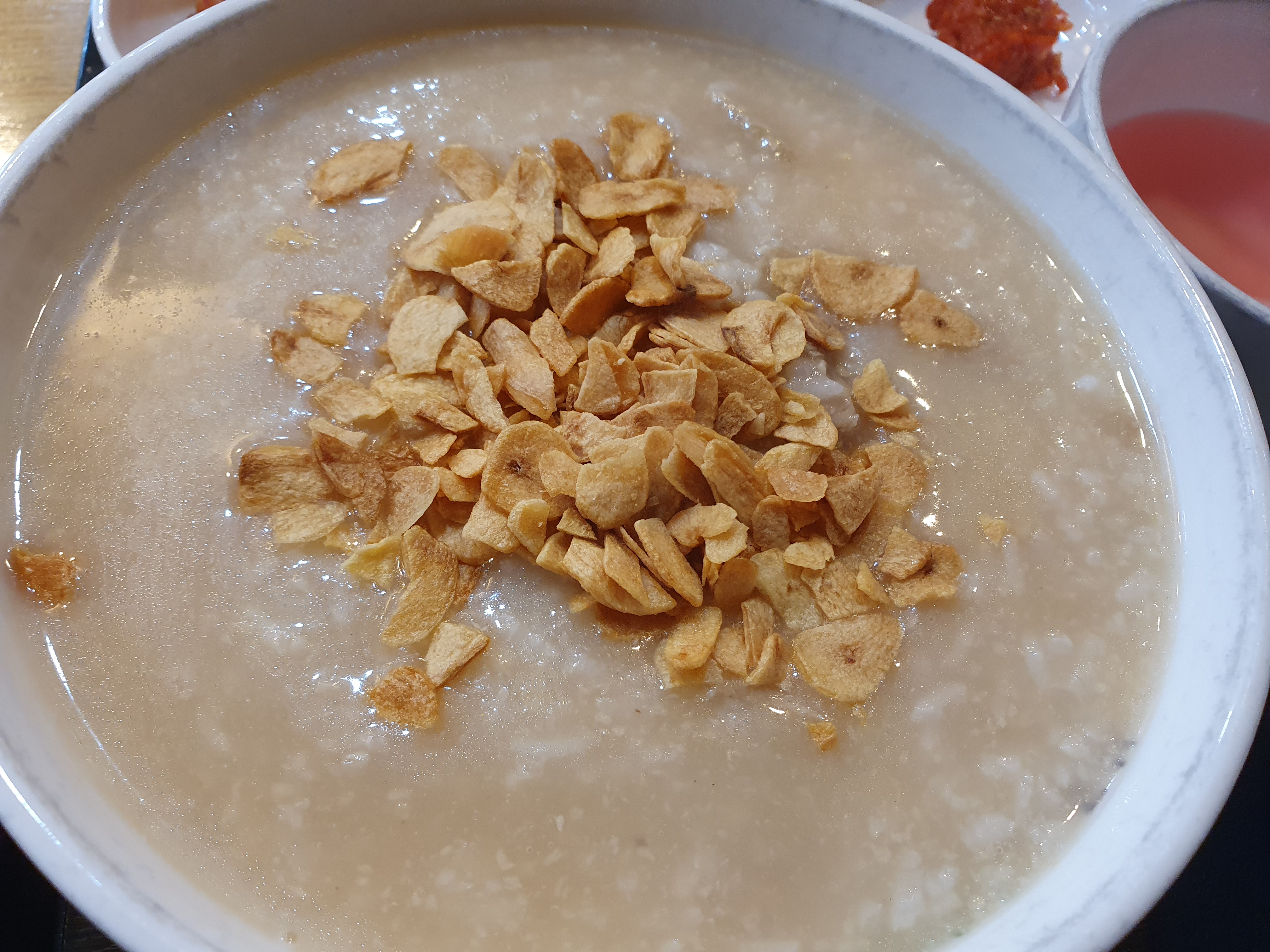 후레이크가 씹히면서 마늘향이 확 나고 죽자체 에서도 향이나는거 같았다. 어느 블로그에서 마늘죽이라고 표현한걸 봤는데 무슨느낌인지 확 와닿았다....