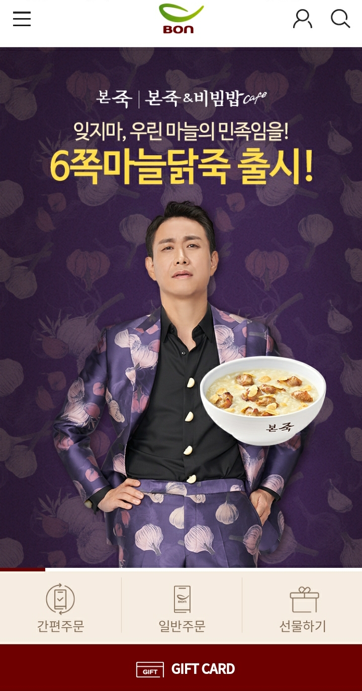 6쪽마늘닭죽 먹어봤니? 마늘왕자 오정세의 추천! 신제품 6쪽마늘닭죽 출시 기념 본죽 전 메뉴 2,000원 할인! 카카오톡 채널 추가만 하면 본죽 메인 메뉴 구매 시 사용 가능한 2,000원 #할인쿠폰 바로