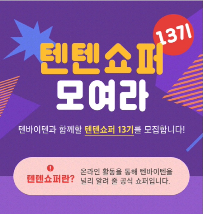 텐바이텐에서 텐텐쇼퍼 13기를 모집한다!!!!!