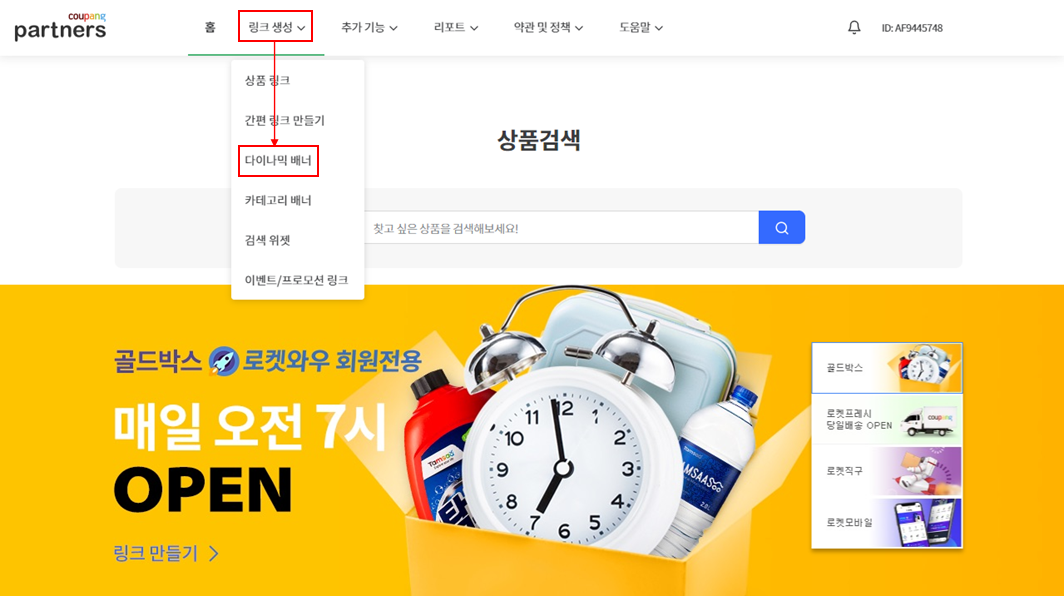 2. 링크생성메뉴의 다이나믹 배너로 이동