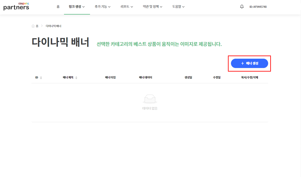 2. 링크생성메뉴의 다이나믹 배너로 이동