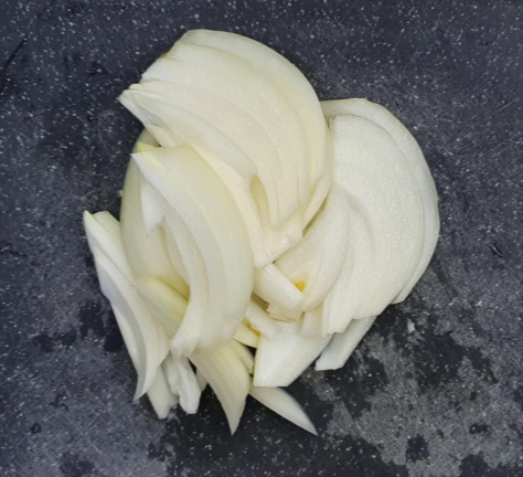 양파의 테두리가 살짝 투명해지면 닭가슴살을 넣는다.