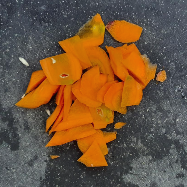 큐브로 썰경우 한입사이즈보다 약간 크게 썰어준다.