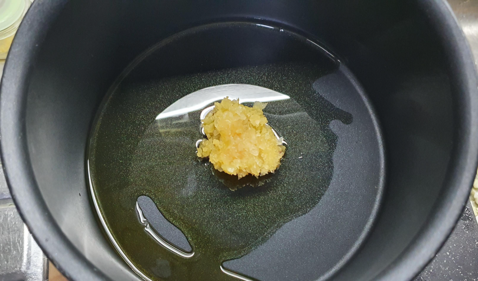 올리브유에 다진마늘 한큰술 넣는다.