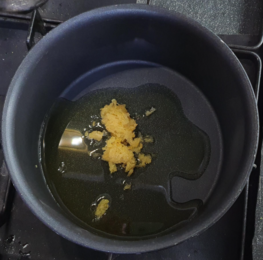 마늘기름 생성에 돌입한다.