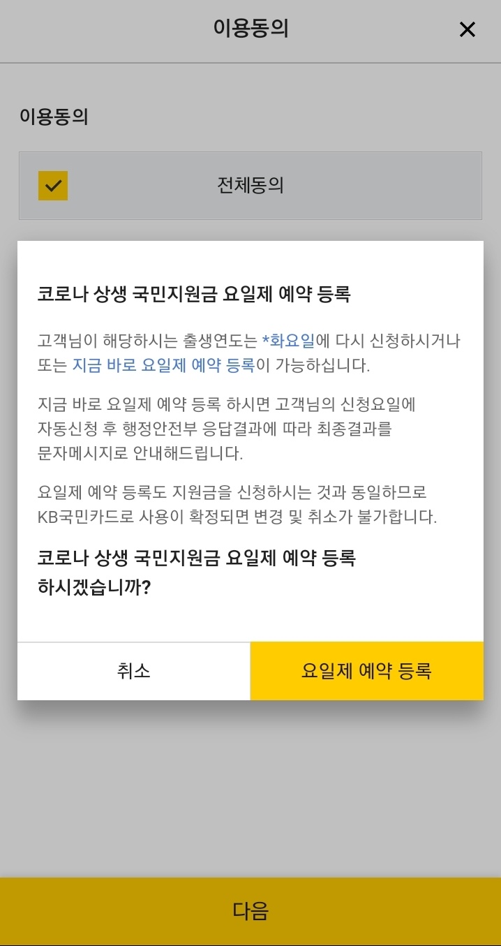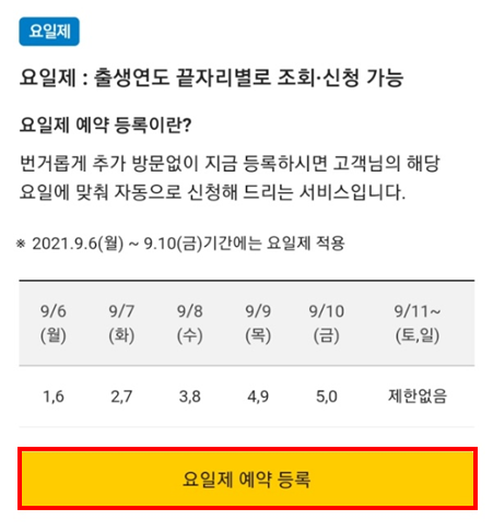 국민카드는 신청 요일이 아니어도 예약등록제를 통해 미리 접수 할 수 있습니다.