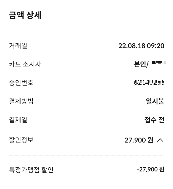 삼성카드 앱에서 결제내역 확인해보니 10%할인 되었따!!