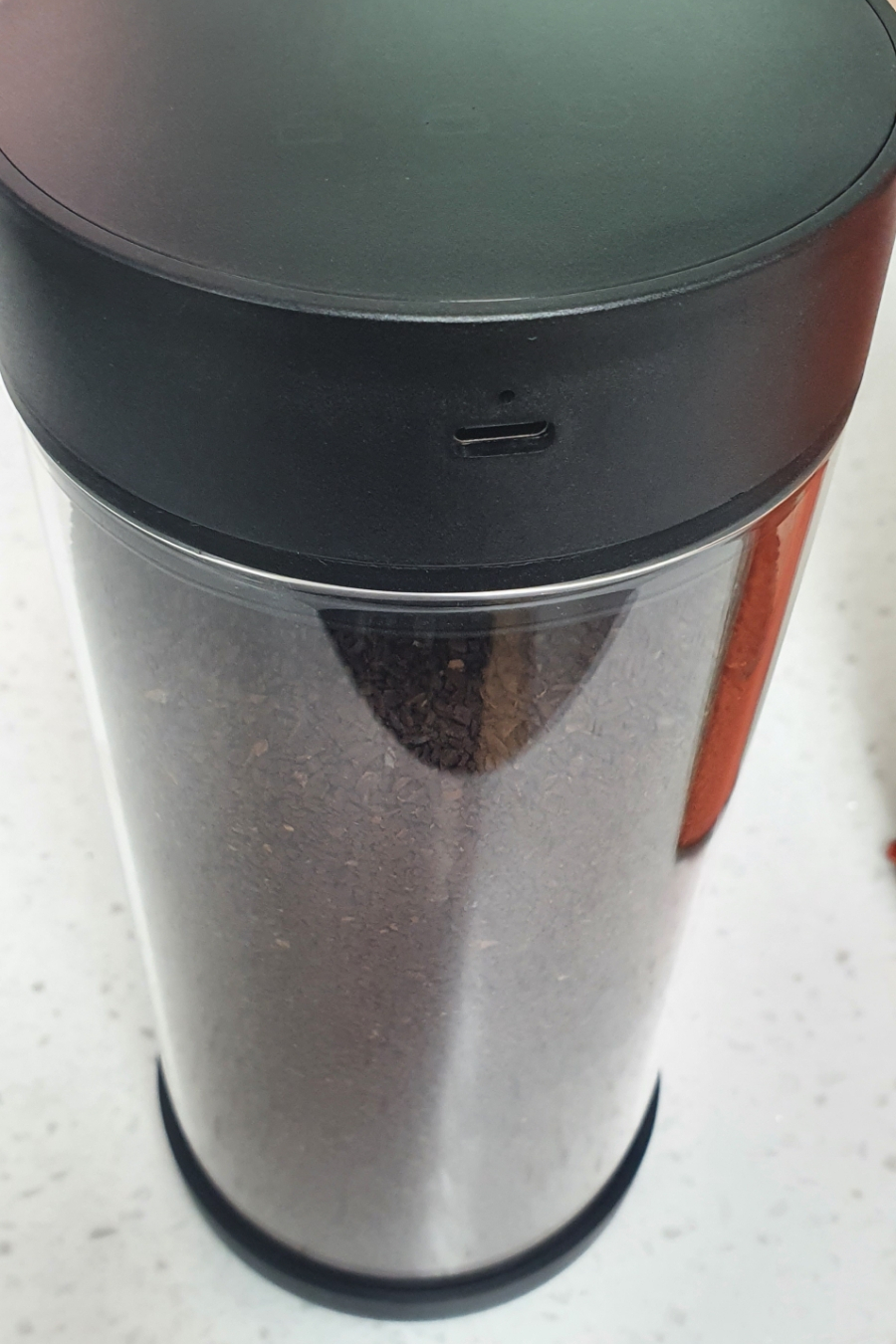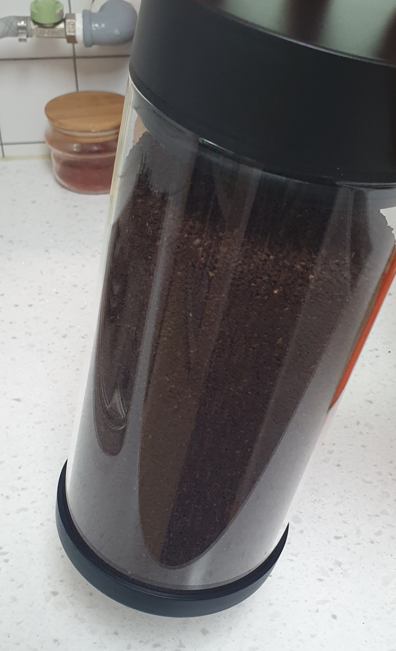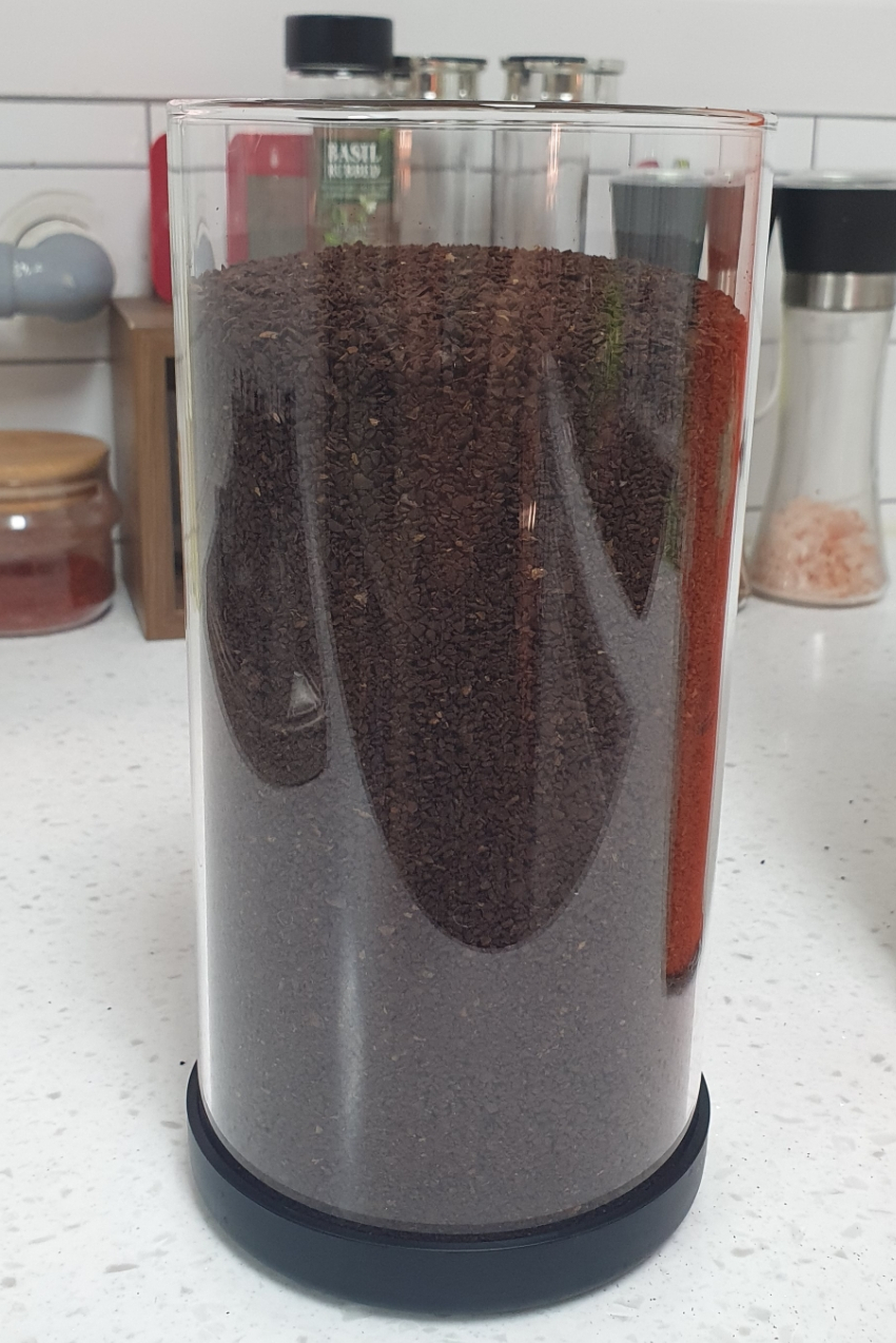 그동안은 분쇄된 원두 봉투를 김치통에 넣어놨었다.