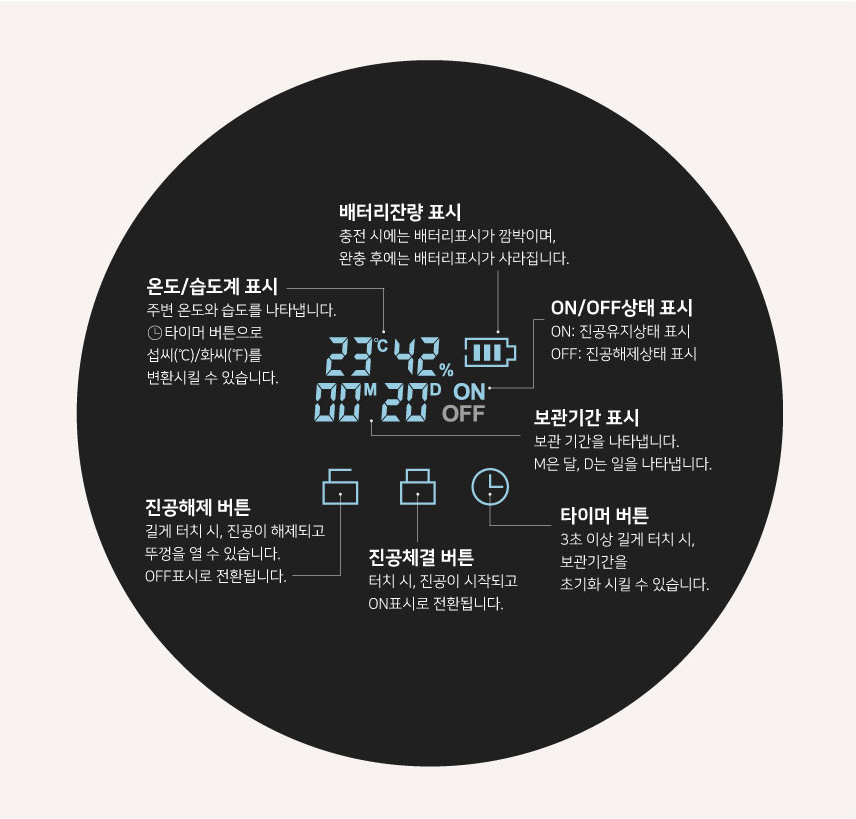 타이머 버튼으로 보관기간 초기화도 가능하다.