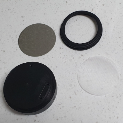 본체 + 종이필터 + 스테인레스 커버 + 실리콘패킹으로 이루어져 있다.