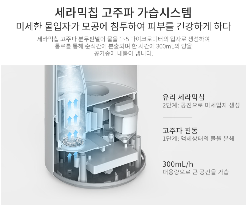 고주파 진동으로 물을 분사해준다.