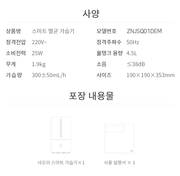 몇가지 알아보다가 가성비가 괜찮은 샤오미 가습기로 결정