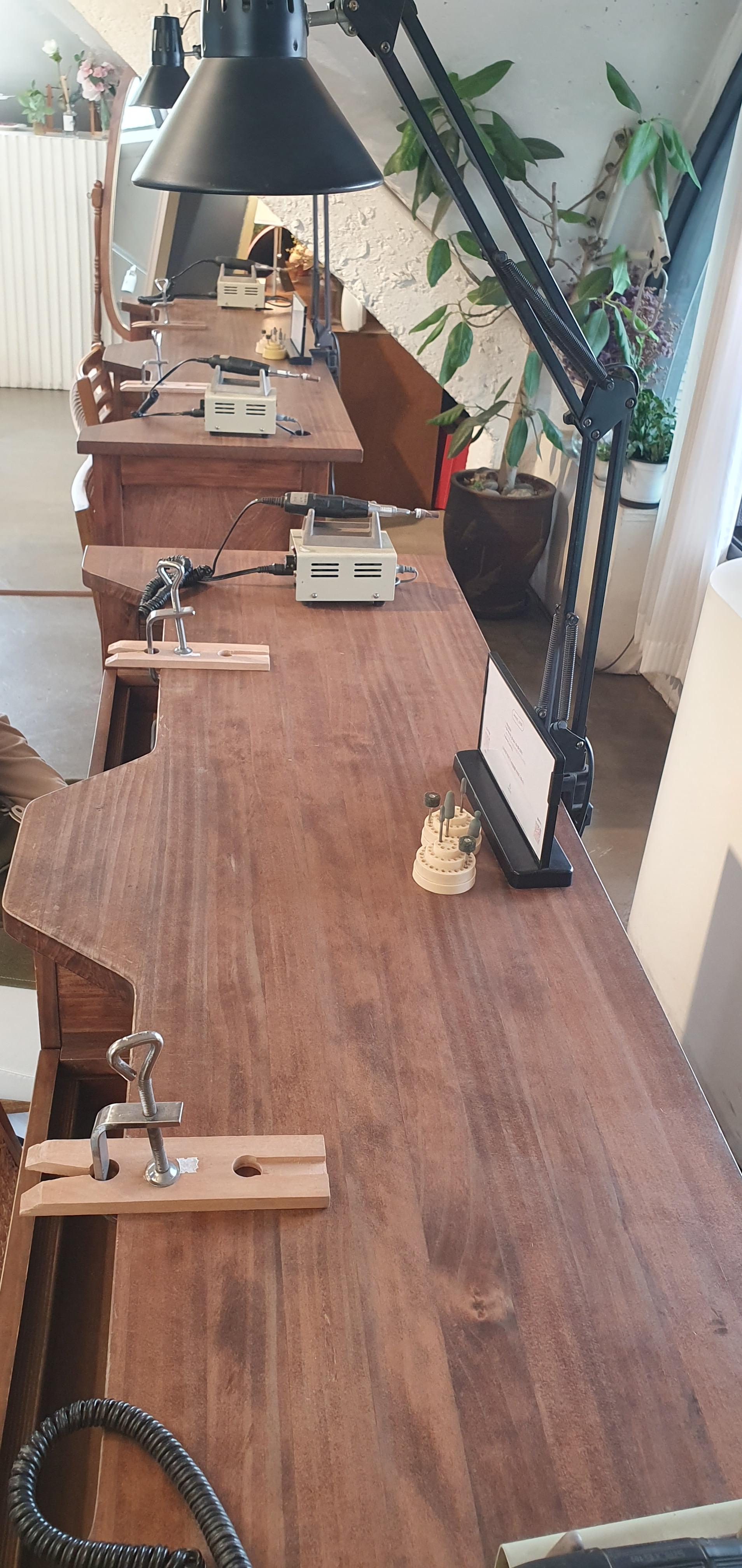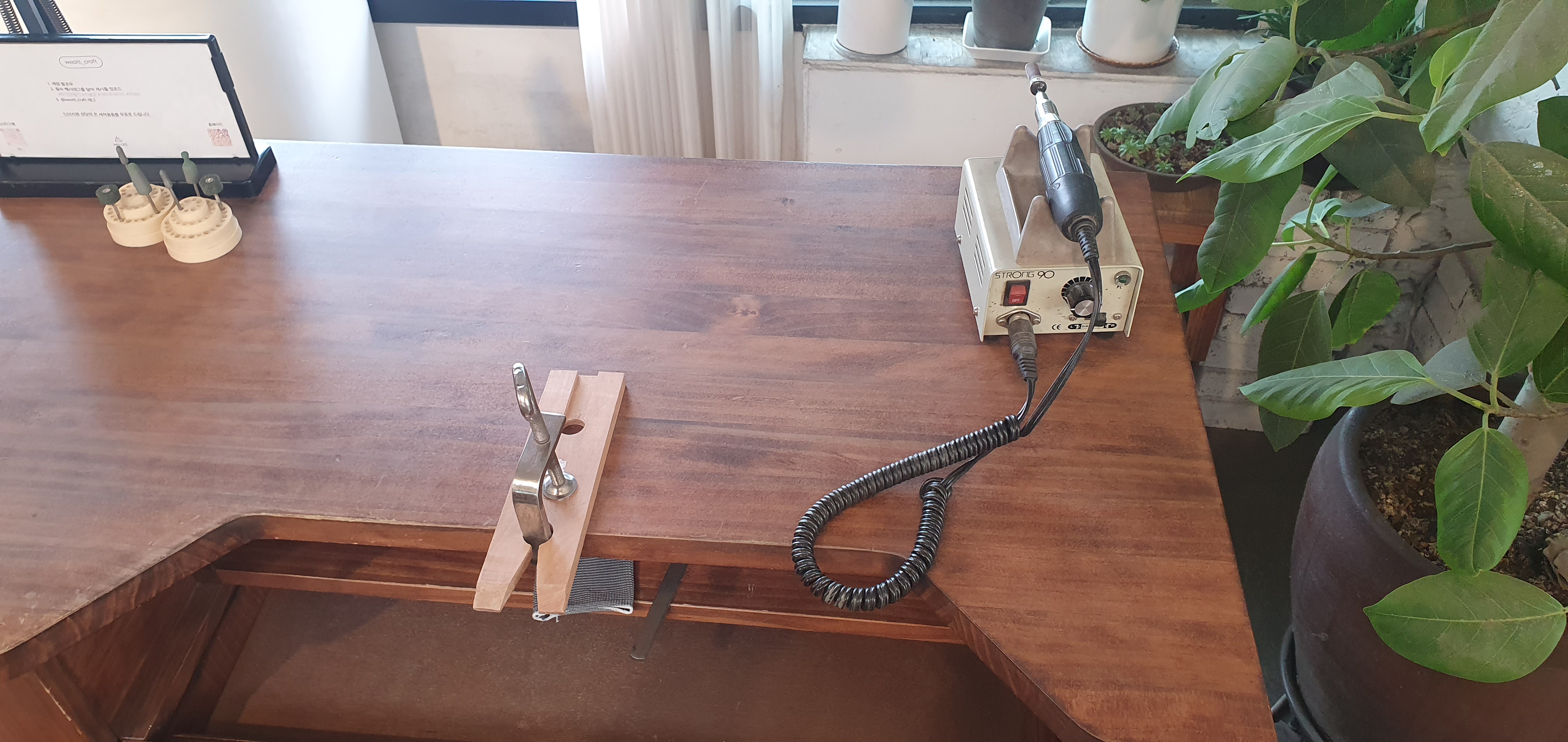 책상 위에는 그라인더와 팁들이 준비되어있다.