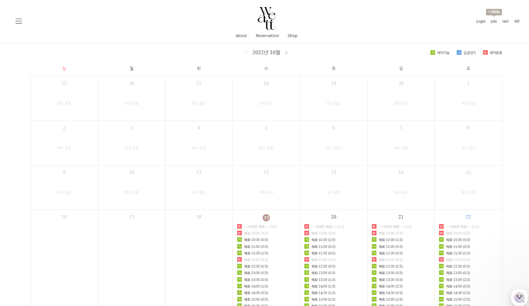 예약가능한 날짜를 선택 할 수 있다.
