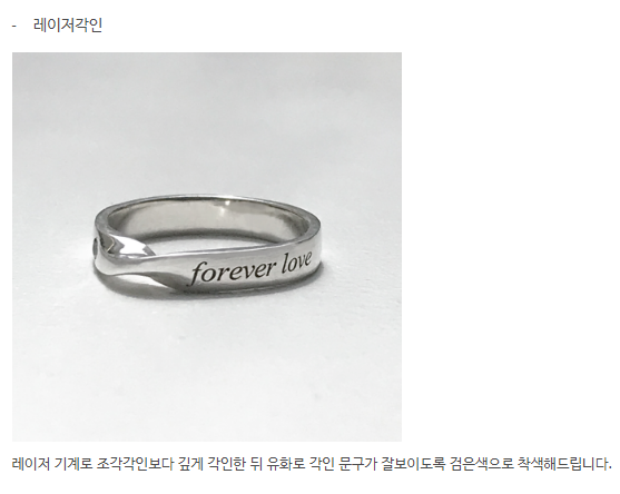 반지 안쪽 바깥쪽 상관없이 각인을 새길 수 있다.