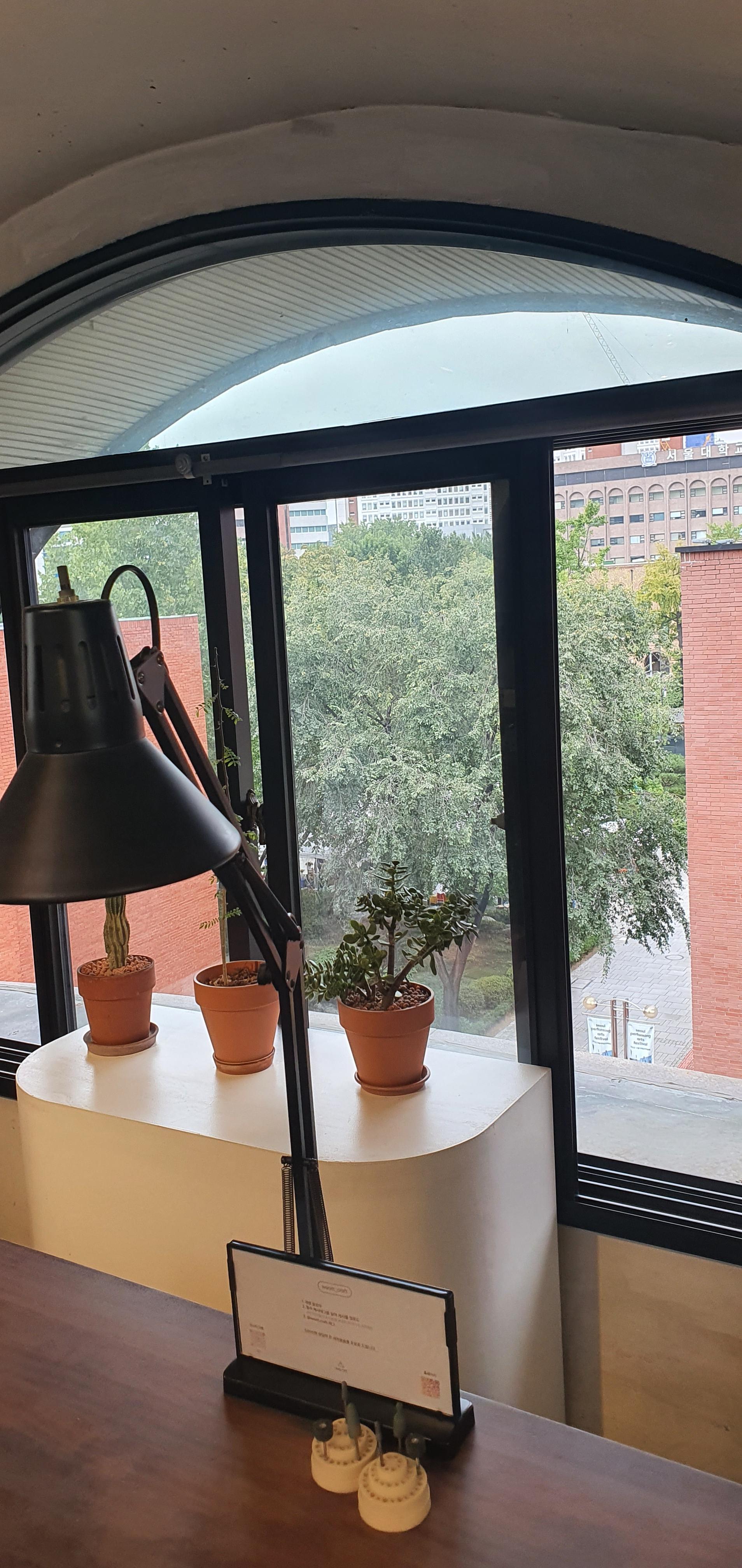 창가 자리 앞 자리에 자리를 잡았다.