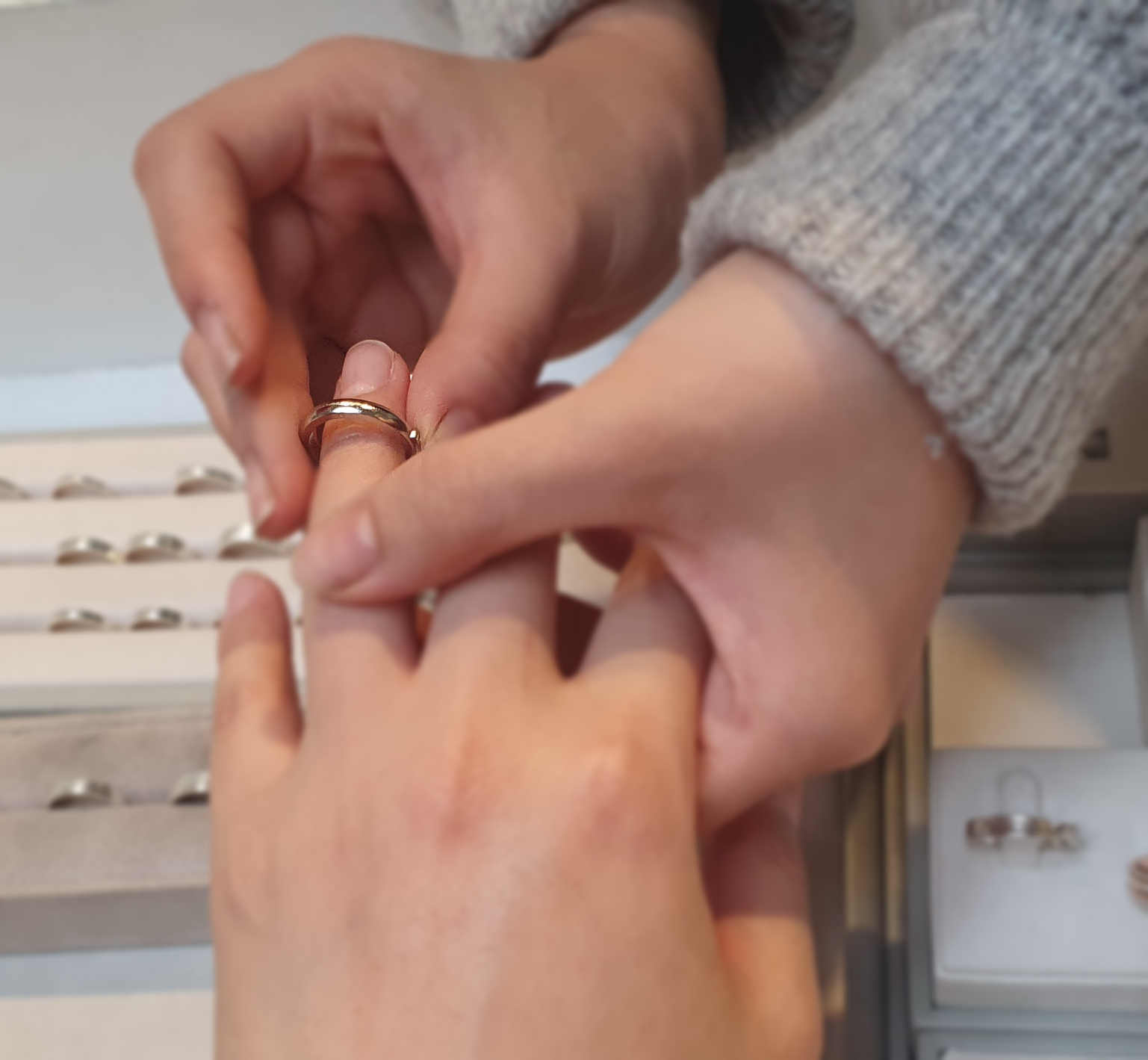 우리 둘만의 반짝이는 반지가 완성되었다.