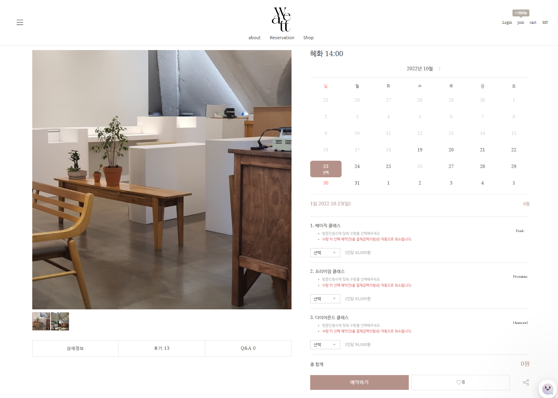 날짜 선택 후 클래스 선택 후 예약버튼을 클릭하면