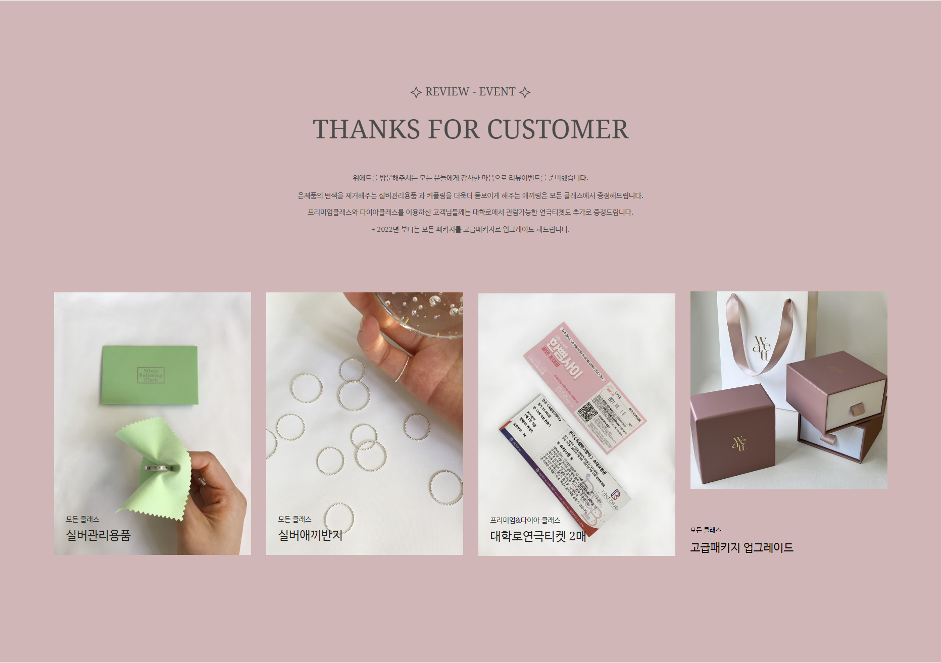 실버관리용품, 실버애끼반지, 대학로 연극티켓 2매, 고급패키지 업그레이드.
