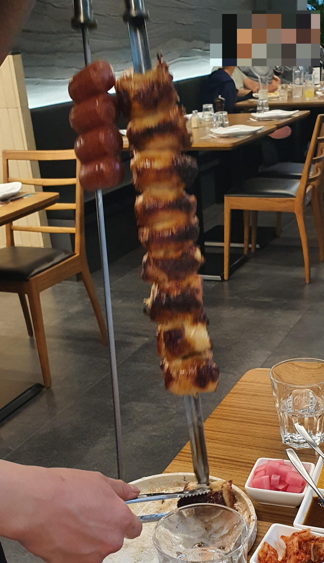 저렇게 서버가 꼬치를 들고와서 하나씩 빼서 접시에 놔준다.