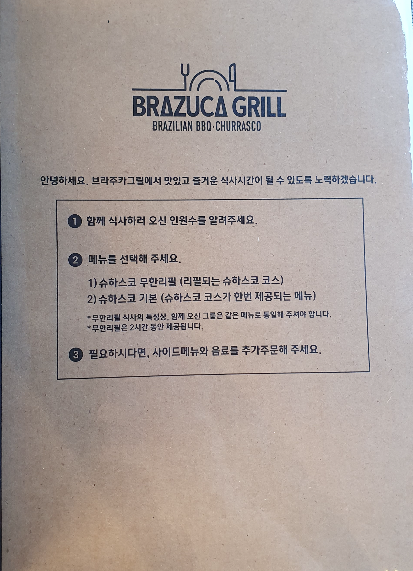 우리는 "스페셜 슈하스코 무한리필"을 주문했다.