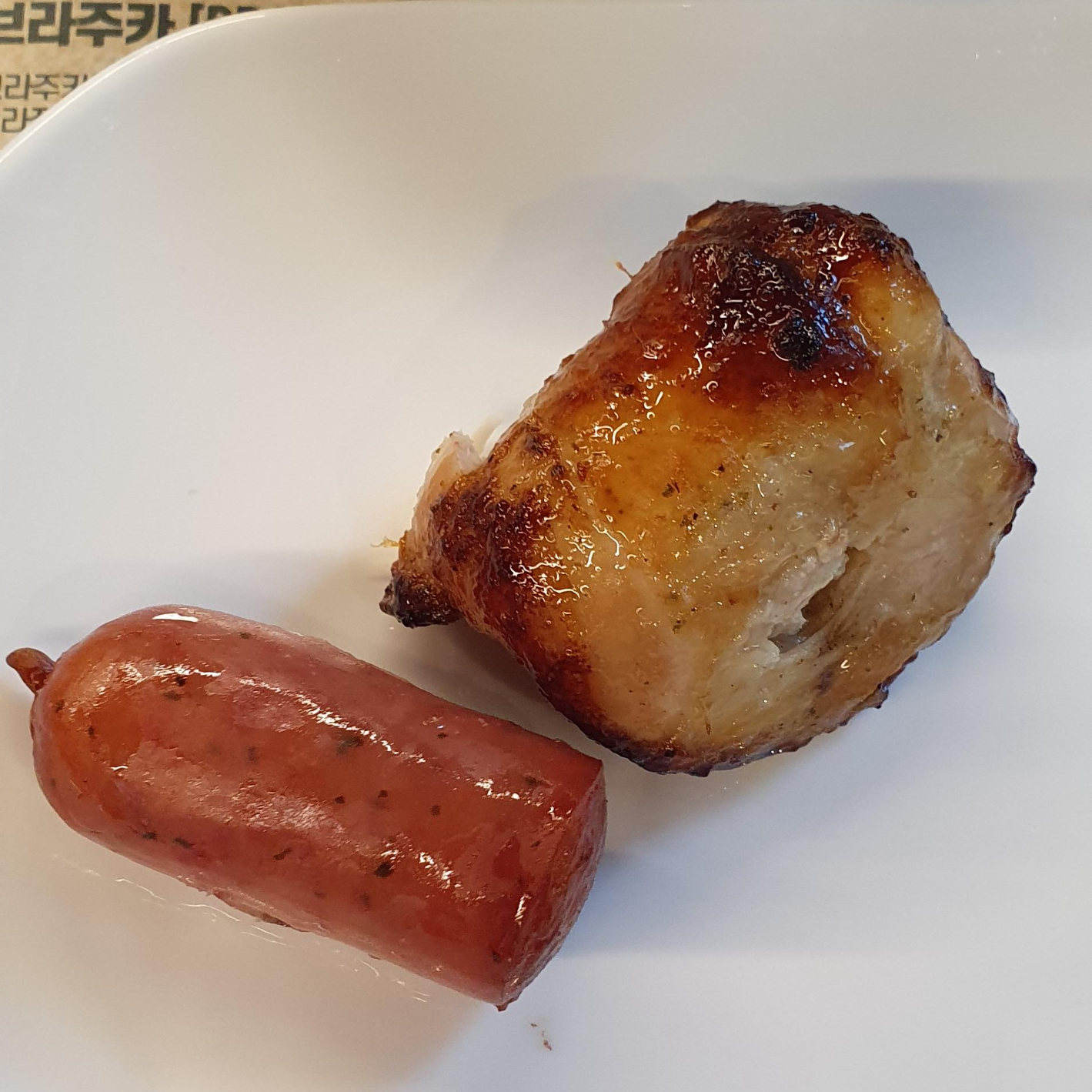 탱글탱글한 소세지와 속이 꽉차고 부드러운 닭다리살.