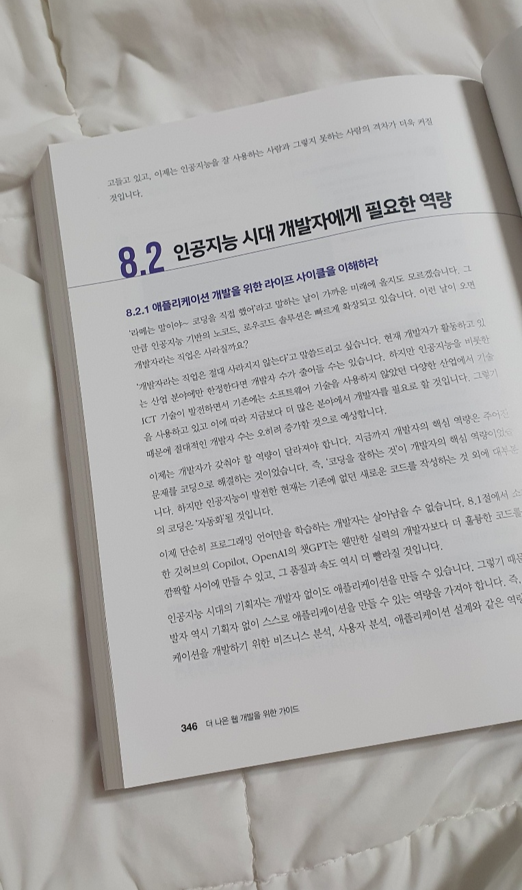 8장에서는 "인공지능 시대에 개발자에게 필요한 역량" 이 부분이 가장 좋았다.