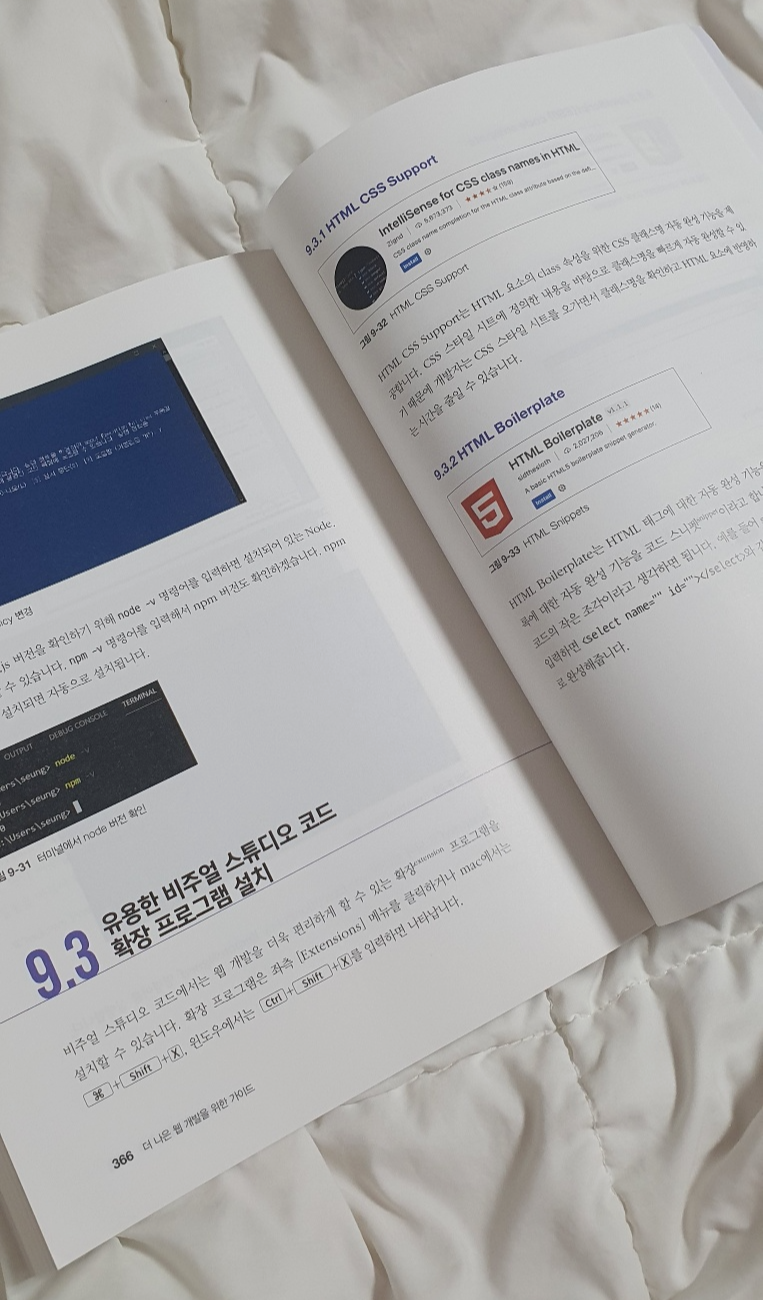 9장에서는 비주얼 스튜디오 사용법과 확장 프로그램 설치를 알려주고 있다.